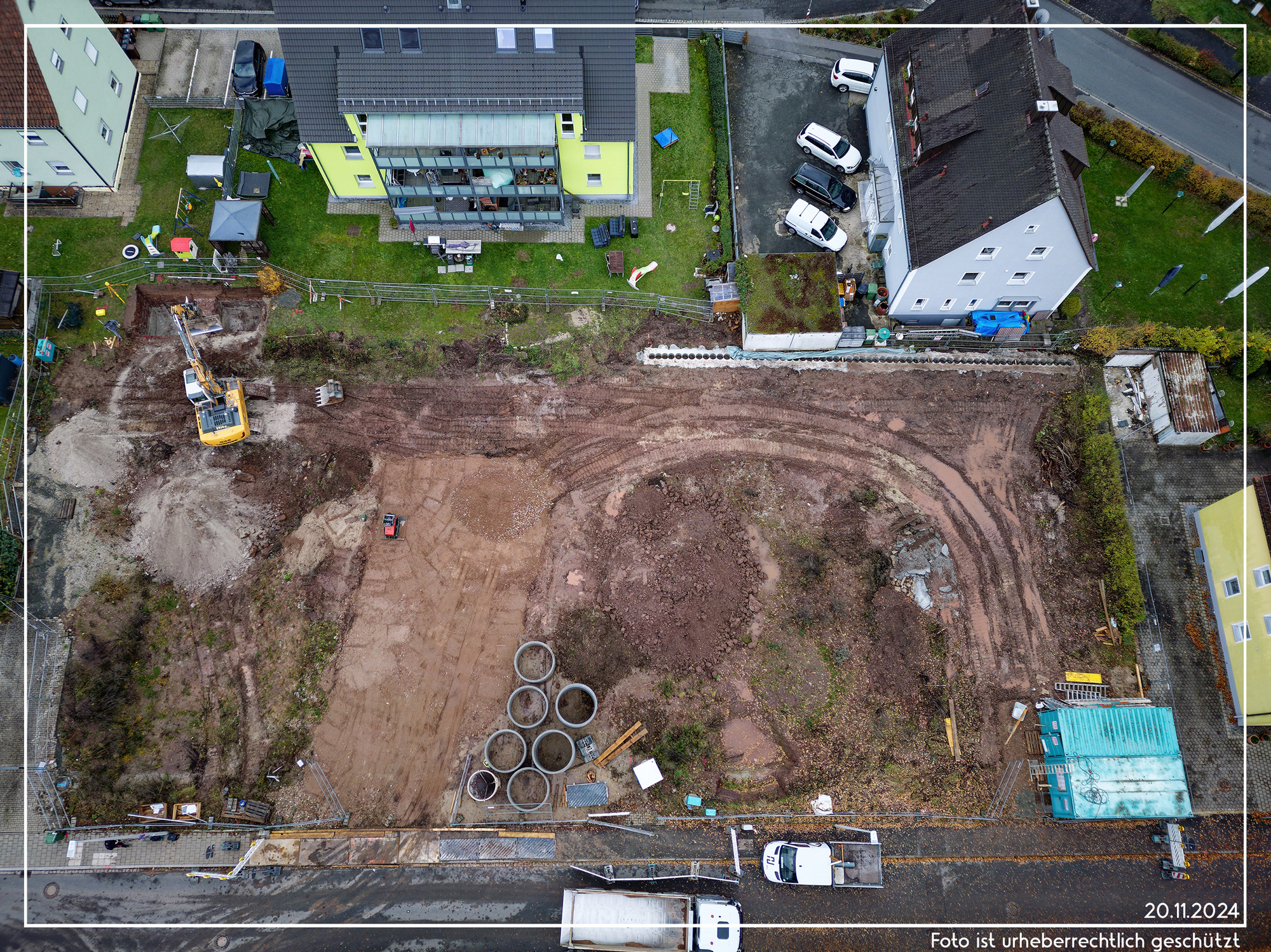 Entstehung eines MFH mit 16 Wohneinheiten und Tiefgarage im ersten Bauabschnitt.