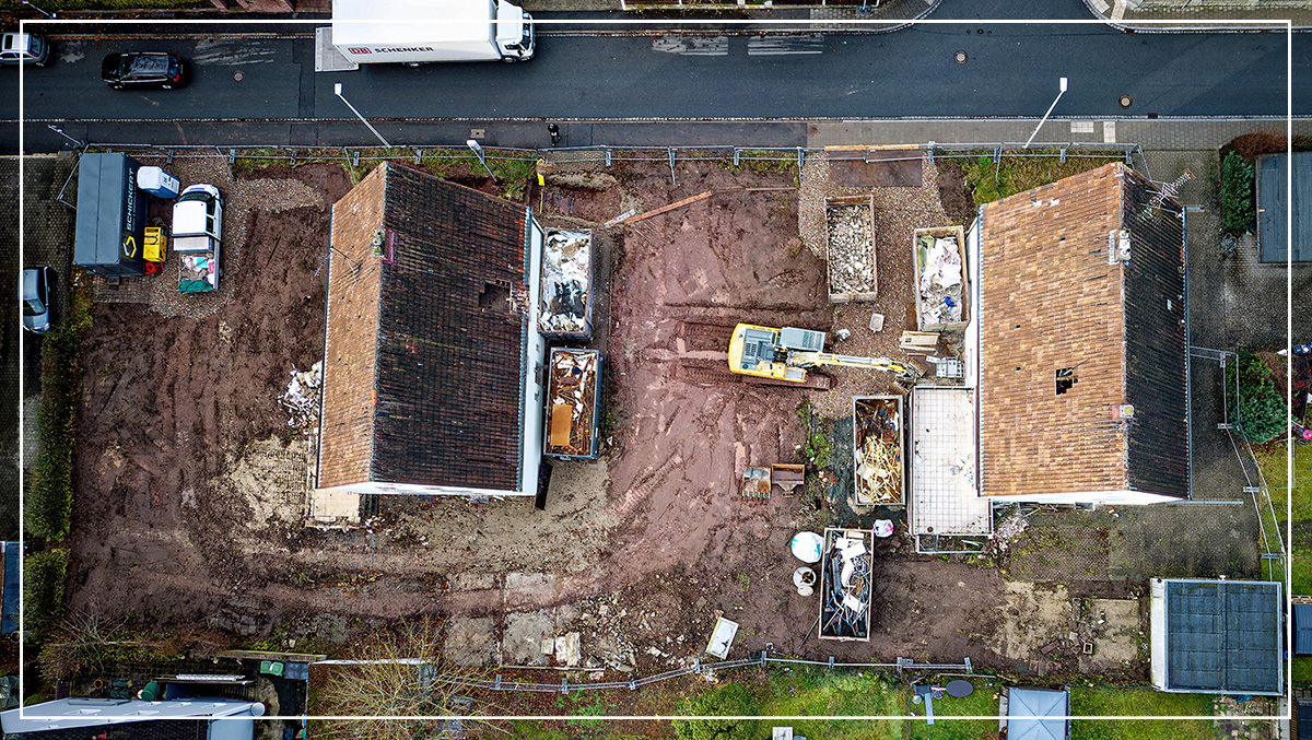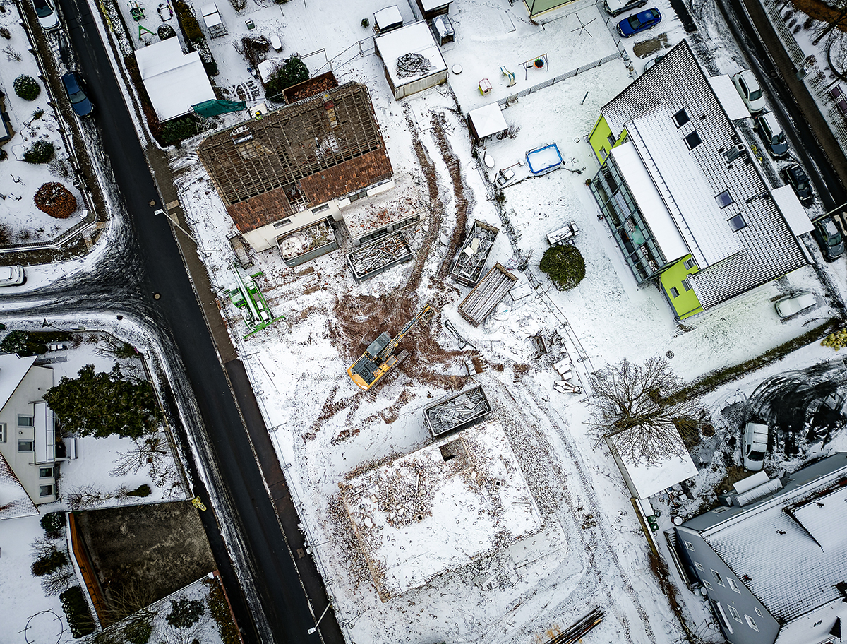 Entstehung eines MFH mit 16 Wohneinheiten und Tiefgarage im ersten Bauabschnitt.